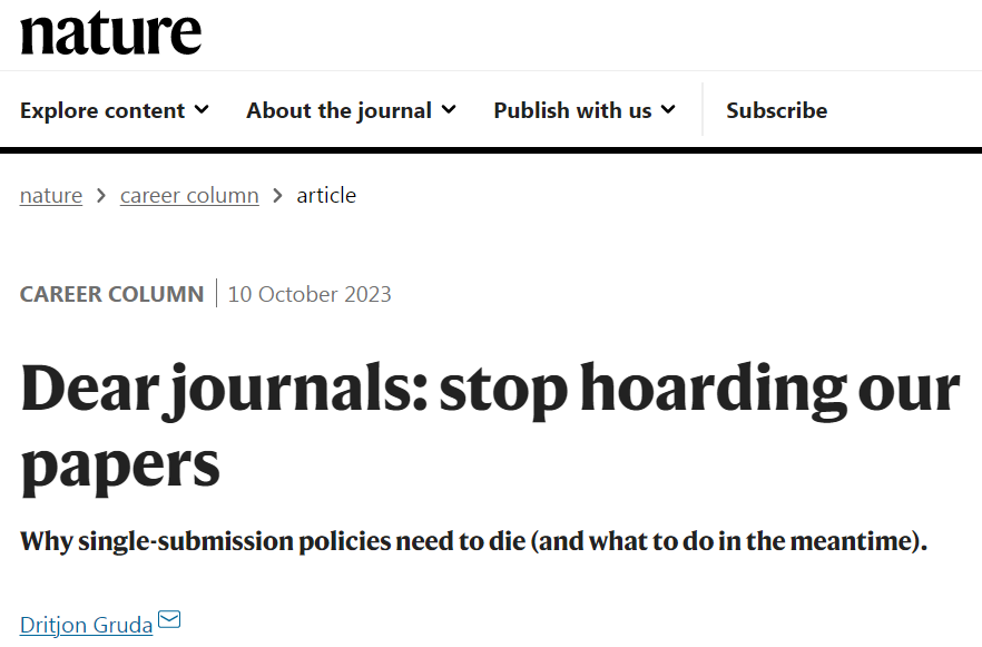 自2023年10月Nature吹哨 “是时候废除一稿多投禁令”,上述两大国际出版社就开始先后响应。